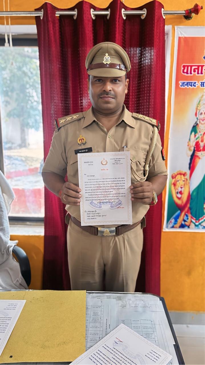 पुलिस अधीक्षक ने सराहना करते हुए कहा कि उत्तर प्रदेश को उत्तम प्रदेश बनाने के लिए तथा विकास की नई ऊचाईयों तक ले जाने के लिए हम सभी को सजगता के साथ समर्पित भाव से कार्य करने की जरूरत है। इसकी सूचना मिलने पर लोकप्रिय प्रभारी निरीक्षक जयप्रकाश दूबे को पुलिसकर्मियों सहित क्षेत्र के लोगों ने बधाई दी है।