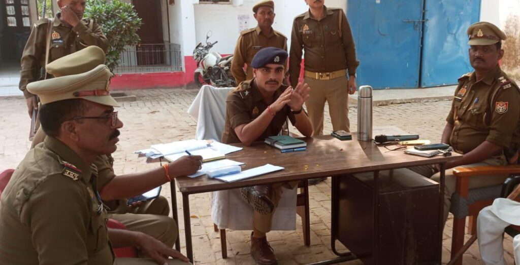 सेमरियावां। रविवार को दुधारा थाना परिसर में प्रशिक्षु सीओ/ थानाध्यक्ष प्रियम राज शेखर पाण्डेय ने क्षेत्र के ग्राम प्रधानों व सम्मानित व्यक्तियों के साथ बैठक कर जानकारी ली और मातहतों को आवश्यक दिशा- निर्देश भी दिये।