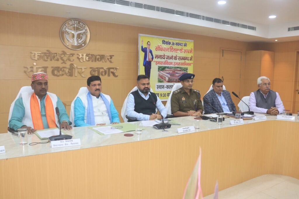 संतकबीरनगर।* स्वतंत्रता के अमृत काल के अवसर पर शासन की मंशा के अनुसार मा0 जनप्रतिनिधिगणों, प्रशासनिक अधिकारीगण की उपस्थित में कलेक्ट्रेट सभागार में आज 26 नवम्बर को संविधान दिवस के रूप में मनाया गया।