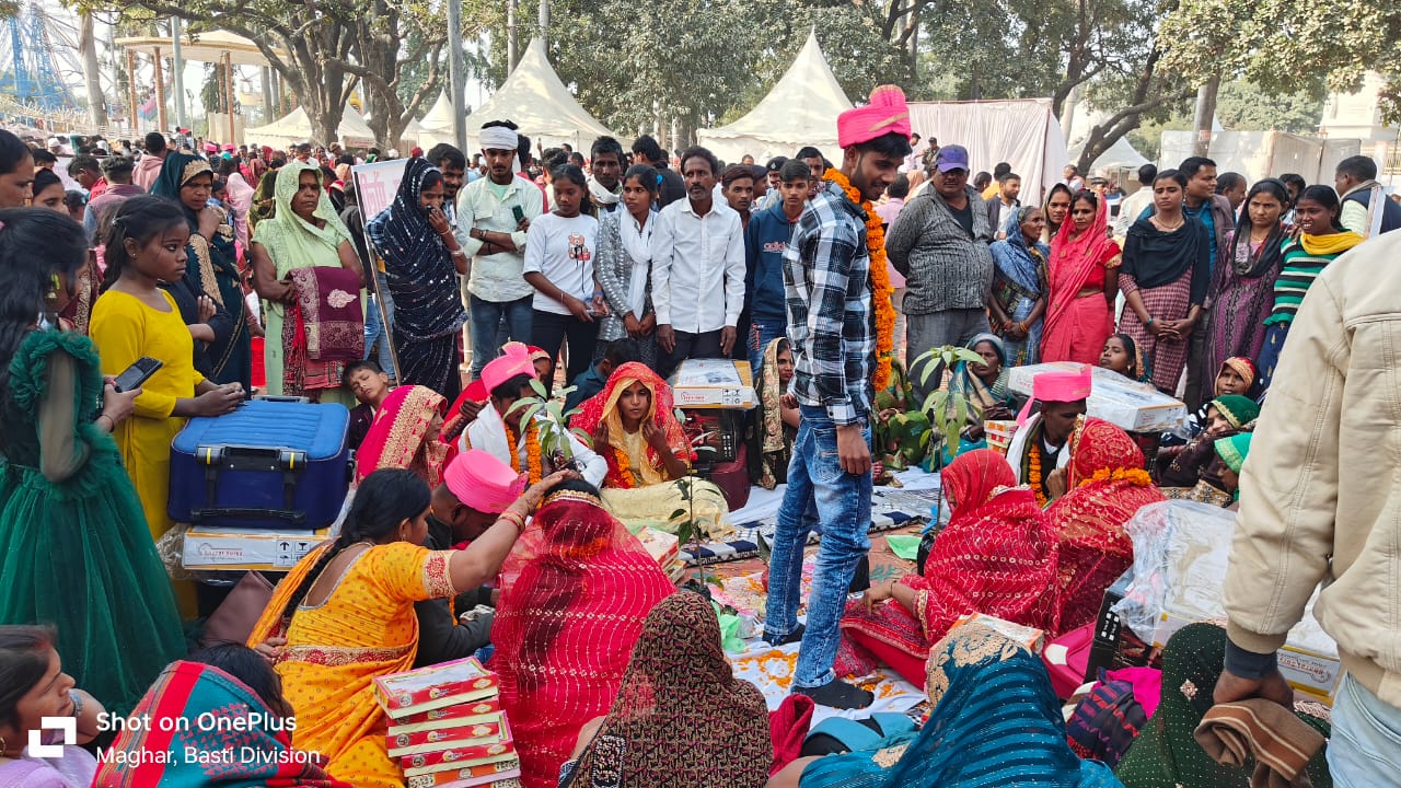संत कबीर नगर 03 फरवरी 2025 (सू0वि0)।* जिलाधिकारी महेन्द्र सिंह तंवर के कुशल दिशा-निर्देशन में ‘‘मुख्यमंत्री सामूहिक विवाह’’ योजनान्तर्गत आज कबीर मगहर महोत्सव के अंतिम दिवस पर कबीर चौरा मगहर में 350 जोड़ों का विवाह धार्मिक रीति रिवाज के अनुसार सकुशल सम्पन्न कराया गया।