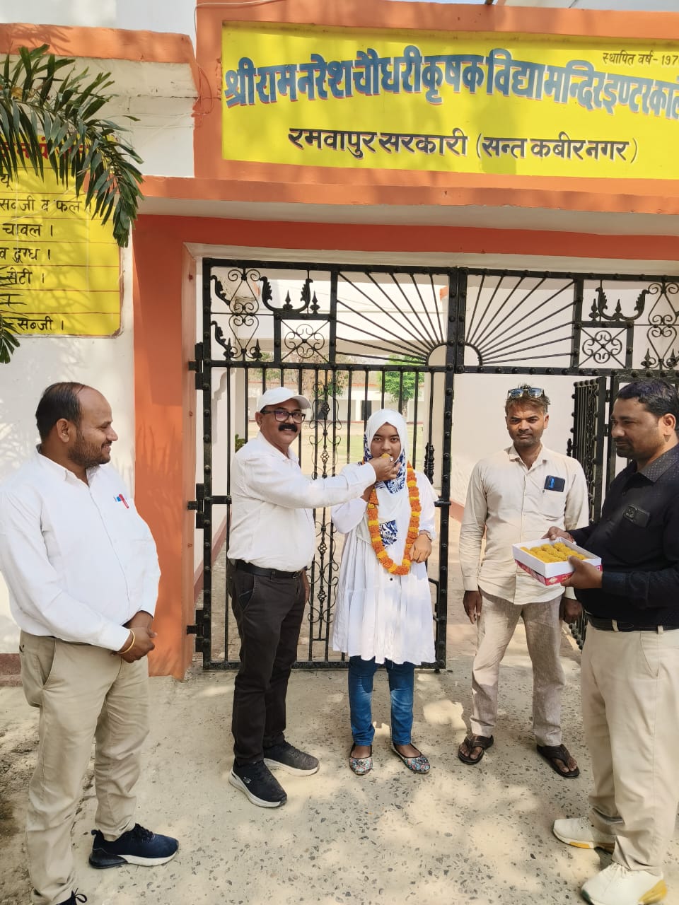 श्री राम नारेश चौधरी कृषक विद्या मन्दिर इंटर कालेज रमवापुर सरकारी की छात्रा फिजा अफताब ने विधालय में की टापर्स