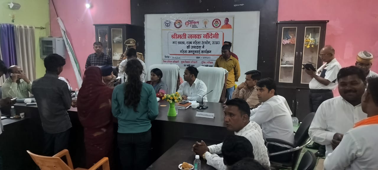 सर्वप्रथम मा0 सदस्य उत्तर प्रदेश राज्य महिला आयोग द्वारा धनघटा तहसील में महिला जनसुनवाई की गयी। जनसुनवाई के दौरान कुल 25 प्रकरण प्राप्त हुये जिसपर मा0 सदस्या द्वारा एक-एक प्रकरण पर सम्बंधित अधिकारियों एवं पुलिस अधिकारी से किये गये कार्यवाही आदि के बारे जानकारी प्राप्त करते हुए त्वरित न्याय दिलाने की दिशा में प्रकरणों को गम्भीरता से लेते हुए निस्तारित करने के निर्देश दिये। उन्होंने कहा कि प्रत्येक दशा में पीड़िता को न्याय मिलना चाहिए।