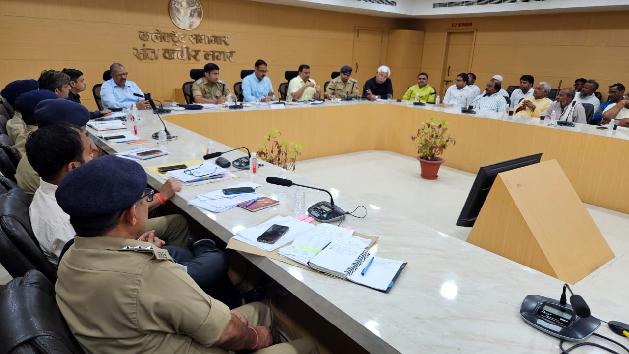 संत कबीर नगर 03 जून 2025(सू0वि0)। जिलाधिकारी/जिला मजिस्ट्रेट आलोक कुमार की अध्यक्षता में दिनांक 07 जून 2025 को ईद-उल-अजहा (बकरीद) के दृष्टिगत सुरक्षा एवं कानून व्यवस्था बनाये रखने तथा शांतिपूर्ण एवं परम्परागत तरीके से आपसी भाई-चारे के साथ त्योहार को मनाने हेतु शांति समिति की बैठक कलेक्ट्रेट सभागार में आयोजित हुई। इस अवसर पर पुलिस अधीक्षक संदीप कुमार मीना, अपर जिलाधिकारी जय प्रकाश, मुख्य विकास अधिकारी जयकेश त्रिपाठी व अपर पुलिस अधीक्षक सुशील कुमार सिंह उपस्थित रहे।
