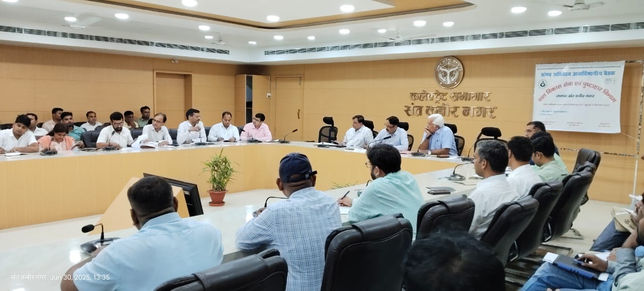 संत कबीर नगर 30 जून 2025 (सूचना विभाग)। जिलाधिकारी आलोक कुमार की अध्यक्षता में *फार्मर रजिस्ट्री अभियान* की समीक्षा बैठक कलेक्ट्रेट सभागार में आयोजित हुई। इस अवसर पर अपर जिलाधिकारी (वित्त एवं राजस्व) जयप्रकाश व मुख्य विकास अधिकारी जयकेश त्रिपाठी उपस्थित रहे।