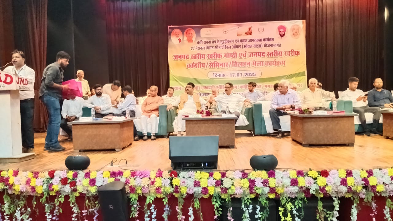 संत कबीर नगर 17 जुलाई 2025(सू0वि0)। कृषि विभाग द्वारा एकदिवसीय जनपद स्तरीय खरीफ गोष्ठी एवं जनपद स्तरीय खरीफ वर्कशॉप एवं सेमिनार तथा तिलहन मेला कार्यक्रम का आयोजन संत कबीर नगर प्रेक्षागृह मगहर में आयोजित किया गया | कार्यक्रम का शुभारंभ मा0 विधायक खलीलाबाद अंकुरराज तिवारी, जिलाधिकारी आलोक कुमार, मुख्य विकास अधिकारी जयकेश त्रिपाठी एवं उप कृषि निदेशक डॉ राकेश कुमार सिंह द्वारा दीप प्रज्वलन कर किया गया |