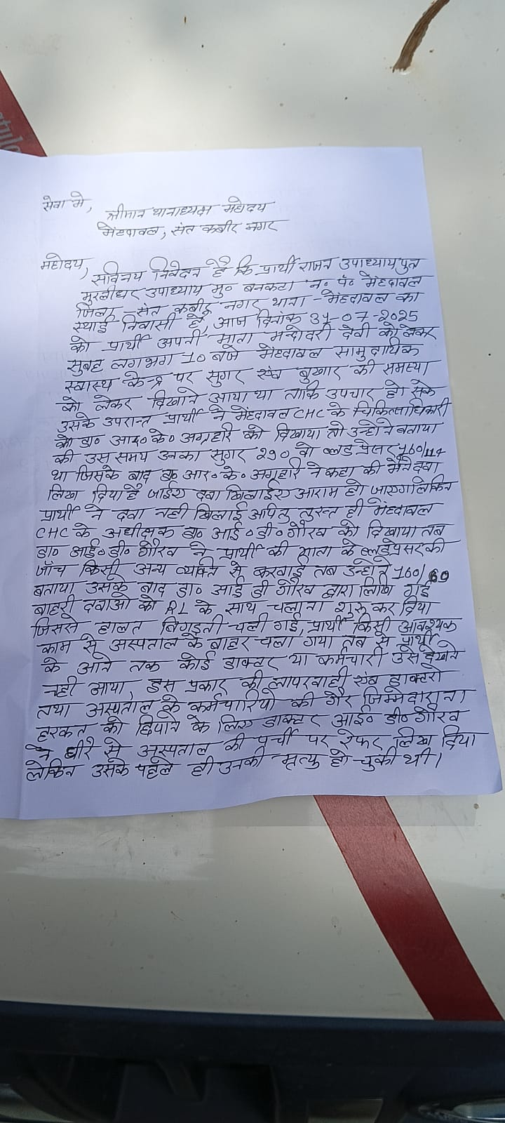 मेहदावल सीएचसी पर महिला का मौत परिजनों ने अधीक्षक पर लगाया आरोप