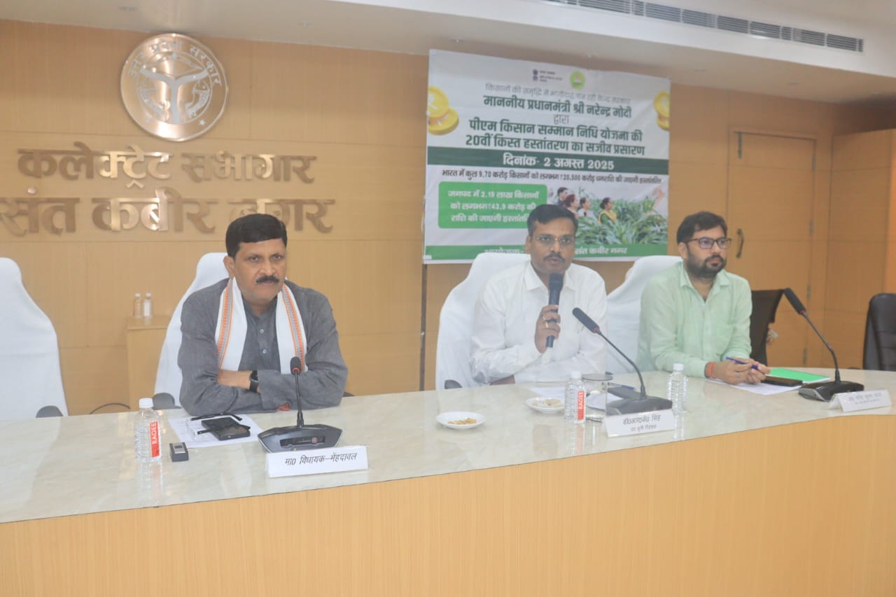 संत कबीर नगर 02 अगस्त 2025 (सूचना विभाग) जनपद में आज *प्रधानमंत्री किसान सम्मान निधि योजना अंतर्गत 20वीं किश्त* जारी किए जाने का सजीव प्रसारण जनपद मुख्यालय, सभी विकासखंड सभागार, पंचायत भवन, प्रधानमंत्री किसान समृद्धि केंद्र, सहकारिता विभाग की समितियां, मंडी, कृषक उत्पादक संगठन के कार्यालय एवं कृषि विज्ञान केंद्र पर प्रदर्शित किया गया। जिसका सजीव प्रसारण मा0 विधायक जी सहित उपस्थित अधिकारियों एवं सम्मानित किसान भाइयों द्वारा देखा और सुना गया।