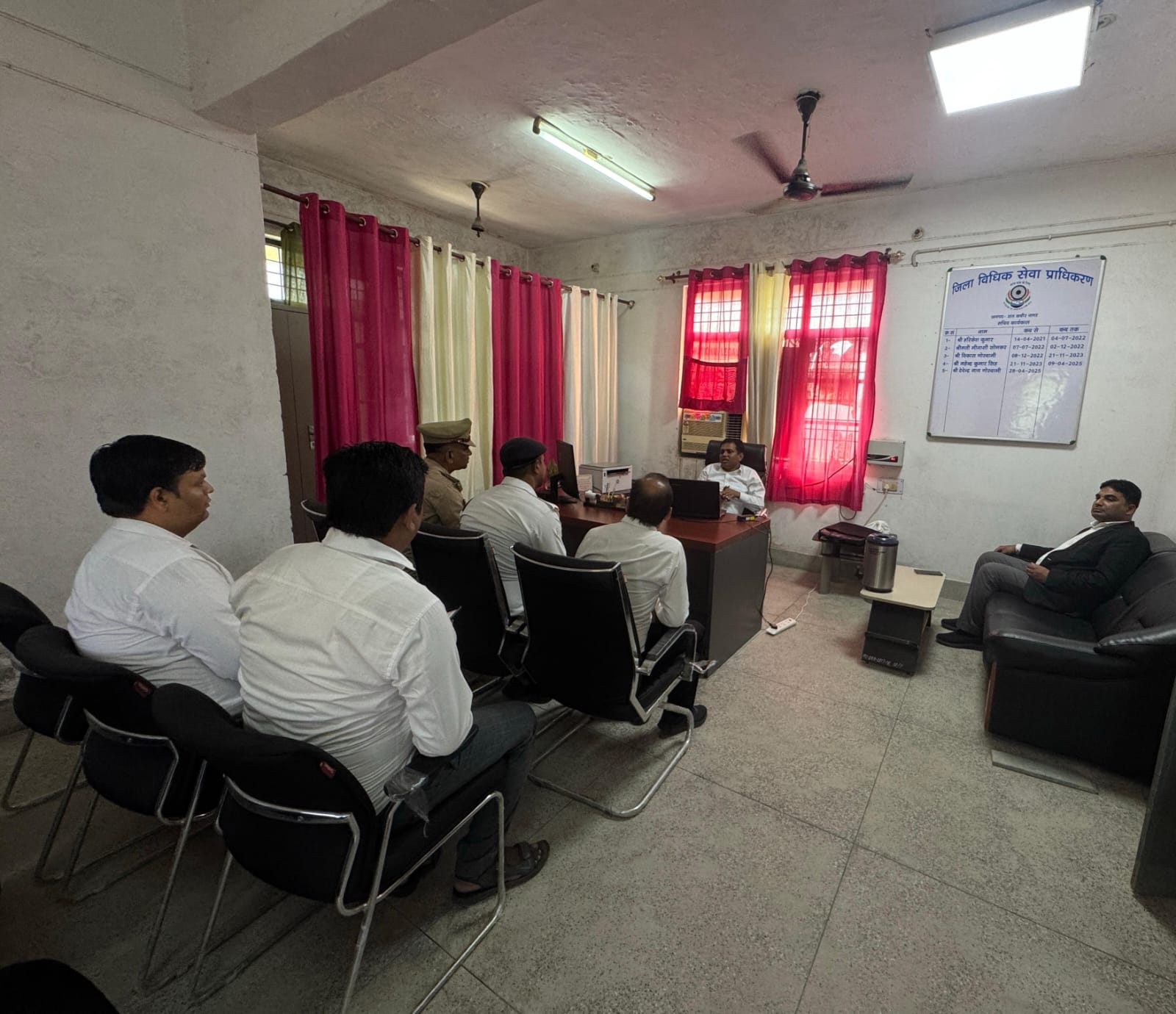 जिला प्राधिकरण के सचिव/अपर जिला जज देवेन्द्र नाथ गोस्वामी ने यातायात के चालानी वादों के निस्तारण हेतु ट्रैफीक सब इंस्पेक्टर परमहंस एवं अन्य को निर्देशित किया कि आगामी कहा कि 13 सितम्बर 2025 को आयोजित होने वाले राष्ट्रीय लोक अदालत की सफलता के लिए अभी से जुट जाए और सभी पक्षकारों को सूचना भेजकर अधिक से अधिक मामलों के निस्तारण का प्रयास करें। सीजेएम न्यायालय के लिपिक आनंद भारती को निर्देशित किया कि सभी लम्बित मामलों में दो बार नोटस तामीला थानों के माध्यम से कराई जाए ताकि राष्ट्रीय लोक अदालत में अधिक से अधिक यातायात के लंबित मामले निस्तारित कराया जा सके।