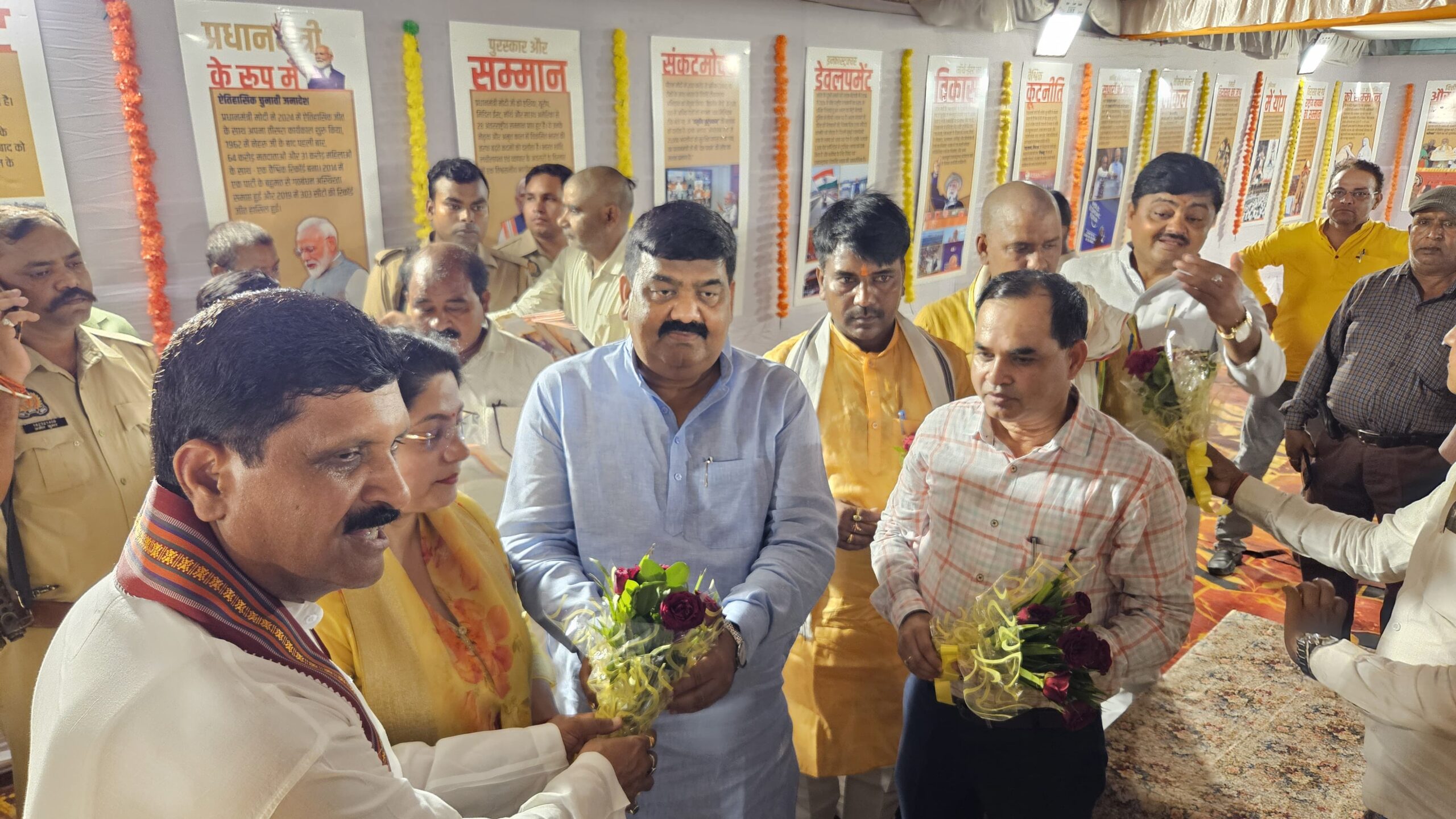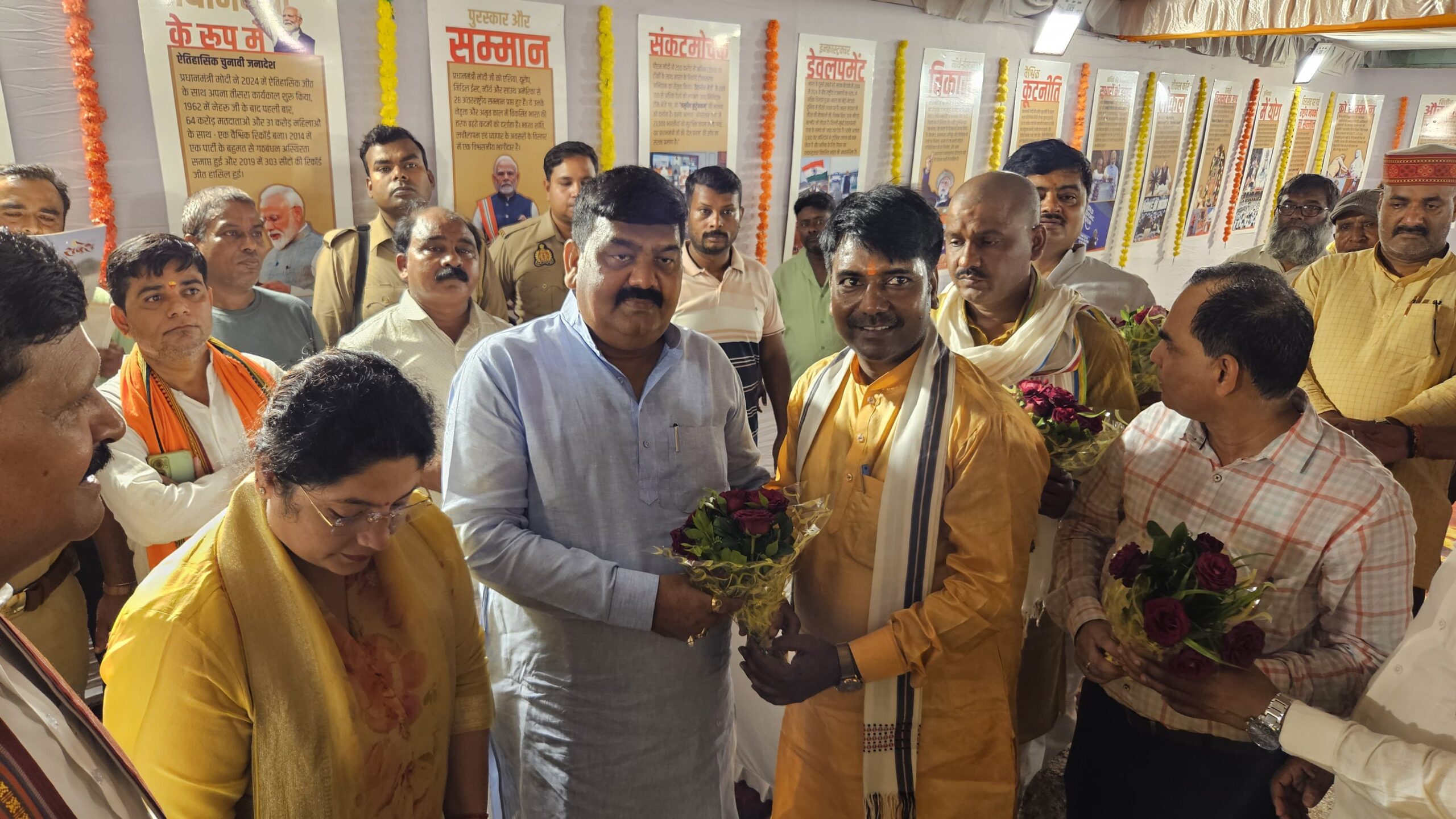 मा0 विधान परिषद सदस्य, मा0 जिलाध्यक्ष भाजपा, मा0 विधायक मेहदावल व मा0 विधायक धनघटा द्वारा द्वारा मा0 प्रधानमंत्री जी के जीवन संघर्षों, आदर्शों व भारत को सशक्त एवं समर्थ बनाने में उनकी भूमिका सहित विकसित भारत की तरफ अग्रसर विकास परक योजनाओं/परियोजनाओं आदि से संबंधित चित्र प्रदर्शनी का अवलोकन किया गया।