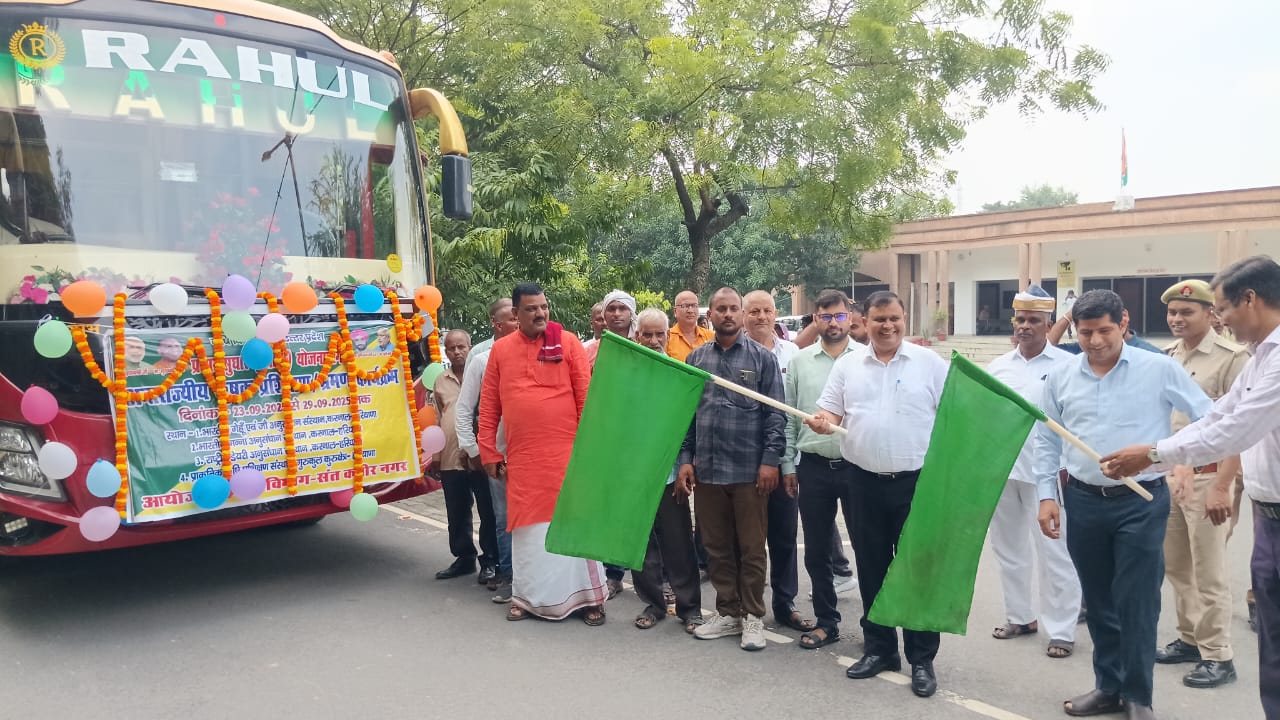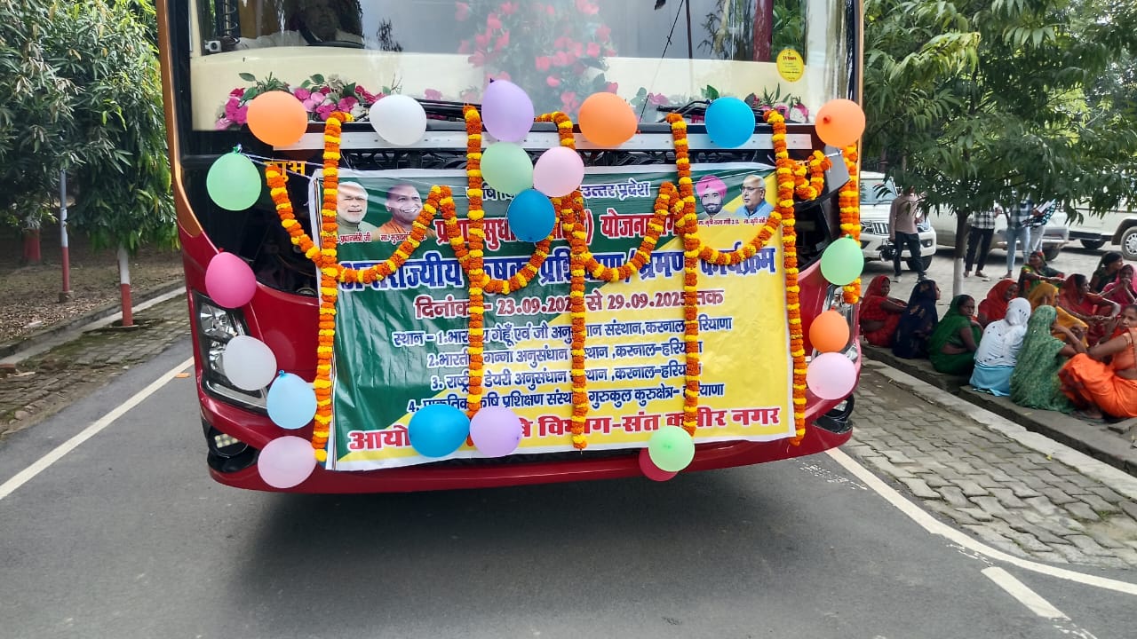 प्रभारी डीएम द्वारा 07 दिवसीय प्रशिक्षण एवं भ्रमण कार्यक्रम हेतु जनपद संत कबीर नगर से करनाल हरियाणा जा रही बस को हरी झंडी दिखाकर किया गया रवाना