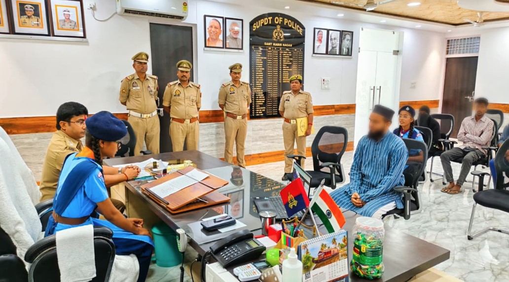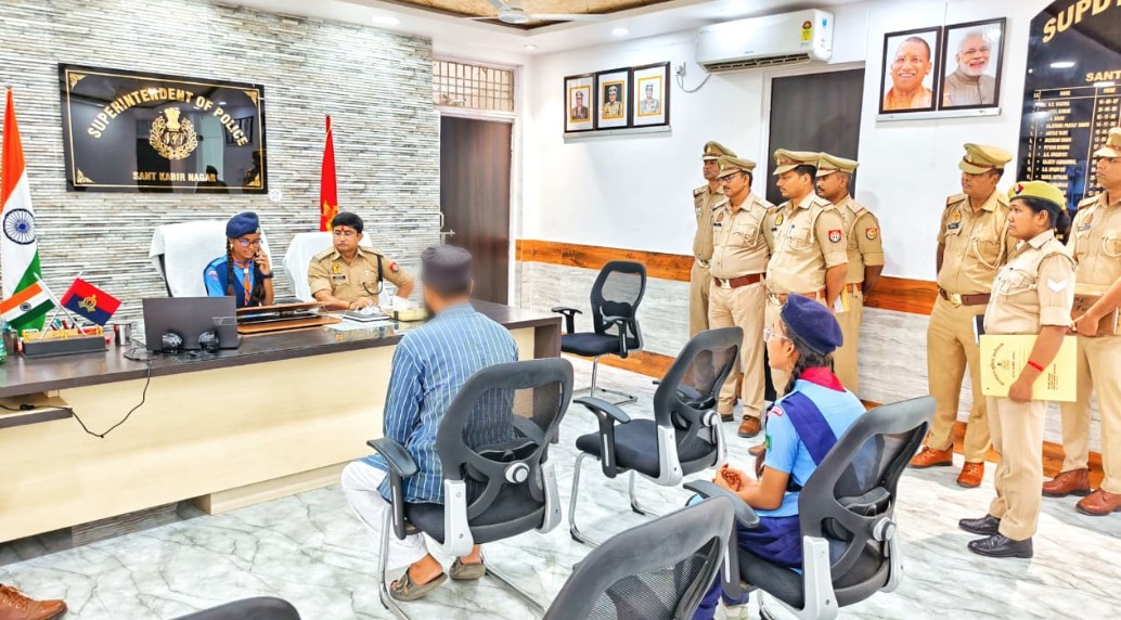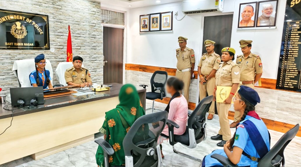 एसपी संतकबीरनगर बनकर छात्रा ने की जनसुनवाई, पीड़ितों को दिया न्याय का आवश्वासन।
