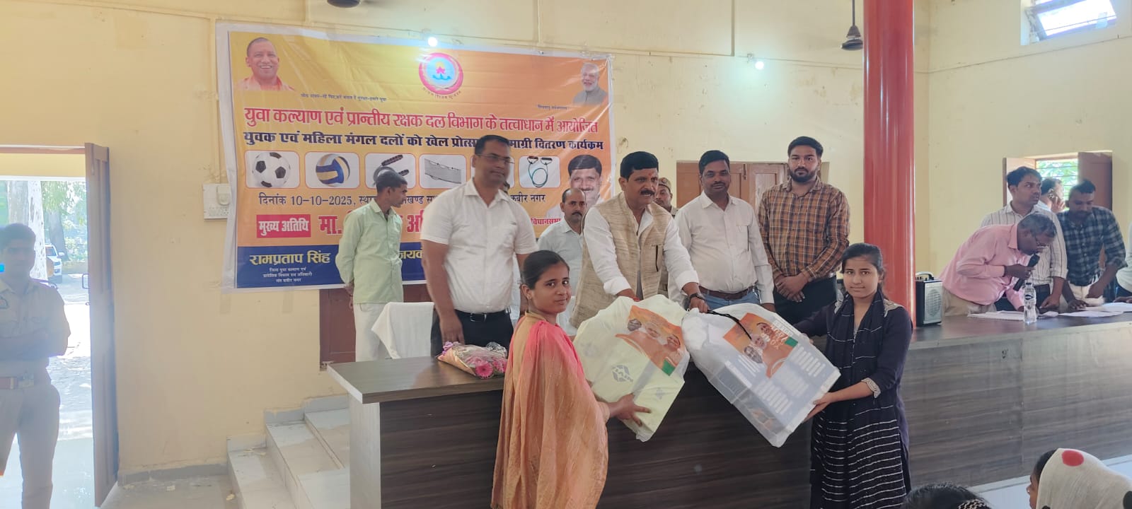संत कबीर नगर 10 अक्टूबर, 2025 (सूचना विभाग) मा0 विधायक मेहदावल अनिल कुमार त्रिपाठी जी द्वारा विकास खंड सभागार मेंहदावल में युवा कल्याण एवं प्रांतीय रक्षक दल विभाग के तत्वाधान में आयोजित युवक एवम् महिला मंगल दलों को खेल प्रोत्साहन सामग्री का वितरण किया गया।