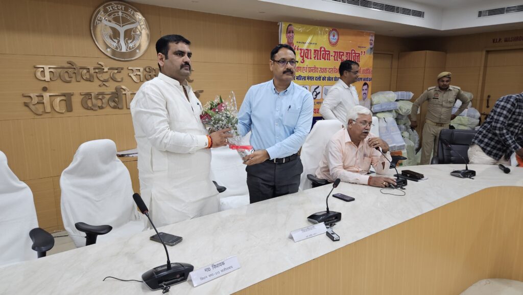 इसी क्रम में मा0 विधायक खलीलाबाद अंकुर राज तिवारी जी, जिलाधिकारी आलोक कुमार की उपस्थिति में जनपद के कलेक्ट्रेट सभागार में युवक एवम् महिला मंगल दलों को खेल प्रोत्साहन सामग्री किट वितरण करने का कार्यक्रम आयोजित किया गया।