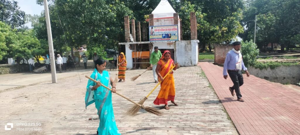 श्रावण मास से पूर्व मन्दिर परिसर की सफाई में जुटे कर्मी