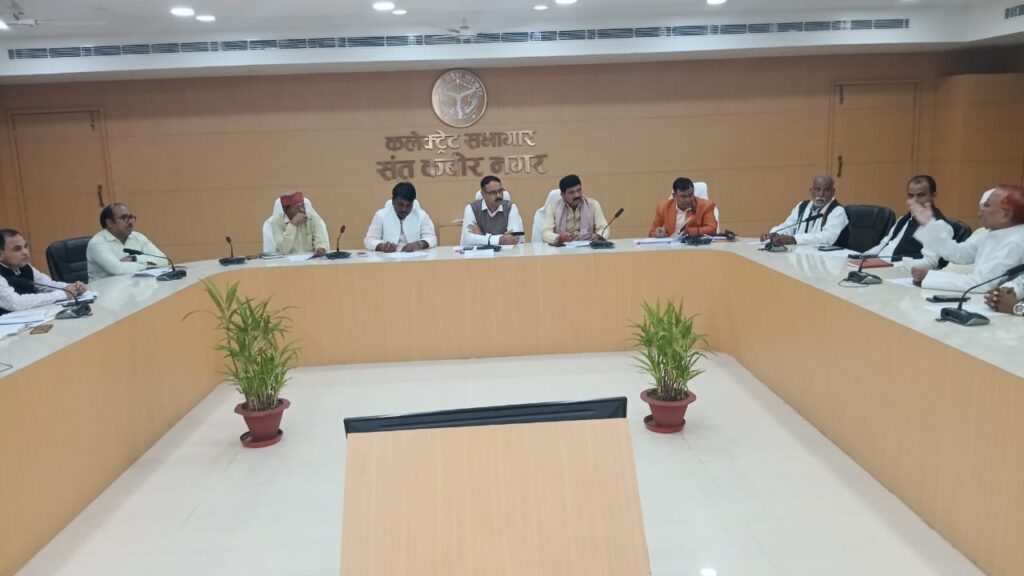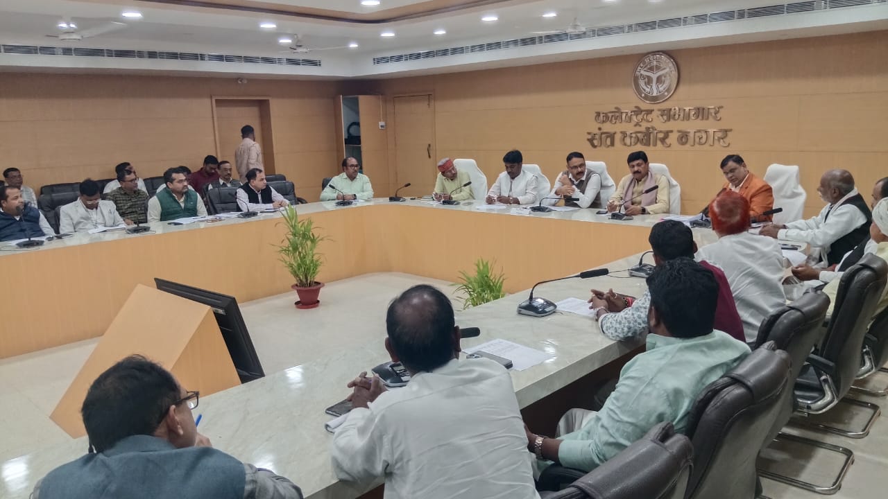संत कबीर नगर 18 नवंबर 2025 (सूचना विभाग) जिला निर्वाचन अधिकारी आलोक कुमार की अध्यक्षता में विधानसभा निर्वाचन क्षेत्रों की निर्वाचक नामावलियों का विशेष पुनरीक्षण पूर्व की जाने वाली मतदेय स्थलों के गतिविधियों की तैयारी/संभाजन के संबंध में मान्यता प्राप्त राजनैतिक दलों के साथ बैठक कलेक्ट्रेट सभागार में आयोजित हुई। इस अवसर पर मा0 विधायक मेहदावल अनिल कुमार त्रिपाठी जी, मा0 विधायक धनघटा गणेश चंद्र चौहान जी व उप जिला निर्वाचन अधिकारी जयप्रकाश उपस्थित रहे।