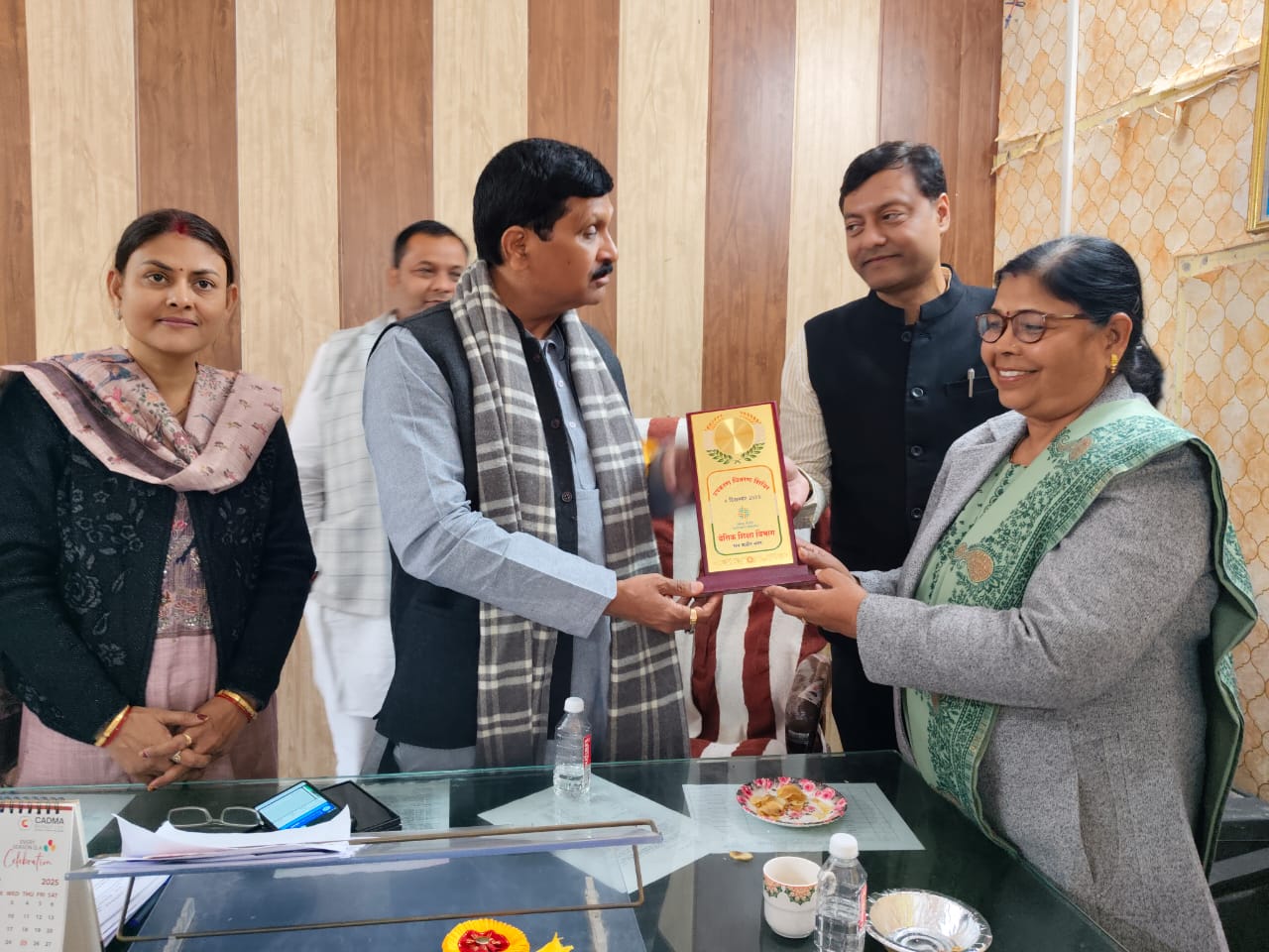 जिला बेसिक शिक्षा अधिकारी अमित कुमार सिंह द्वारा मुख्य अतिथि मा0 विधायक मेहदावल को बैच लगाकर वह माला पहनाकर स्वागत किया गया। इस अवसर पर निशा यादव प्रधानाचार्या राजकीय उच्चतर माध्यमिक विद्यालय बघौली उपस्थिति रहीं।