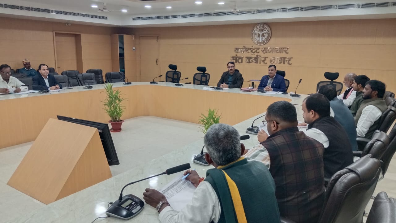 संत कबीर नगर 08 दिसंबर, 2025 (सूचना विभाग) जिला निर्वाचन अधिकारी/जिलाधिकारी आलोक कुमार की अध्यक्षता में राजनैतिक दलों के पदाधिकारियों के साथ जनपद के विधानसभा निर्वाचन क्षेत्रों में निर्वाचक नामावलियों के विशेष प्रगाढ़ पुनरीक्षण (एसआईआर) कार्य की अद्यतन स्थिति एवं प्रगति की समीक्षा से संबंधित बैठक कलेक्ट्रेट सभागार में आयोजित हुई। इस अवसर पर उप जिला निर्वाचन अधिकारी/अपर जिलाधिकारी (वित्त व राजस्व) जयप्रकाश उपस्थित रहे।