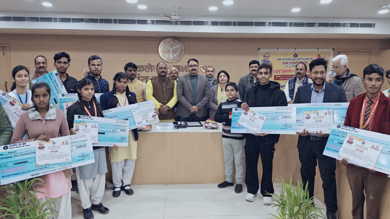 इस अवसर पर मा0 जनप्रतिनिधिगण द्वारा भारत रत्न श्रद्धेय अटल बिहारी वाजपेई जी के जन्म शताब्दी समारोह के उपलक्ष्य में विगत 22 दिसंबर को आयोजित हुए एचआरपीजी कालेज में भाषण एवं काव्य पाठ प्रतियोगिता के प्रथम स्थान प्राप्त विजेताओं को 10,000/-00 रूपए, द्वितीय स्थान प्राप्त विजेताओं को 5000/-00 रूपए तथा तृतीय स्थान प्राप्त विजेताओं को 2500/-00 रूपए की धनराशि का डेमो चेक तथा प्रमाण पत्र से पुरस्कृत किया गया।