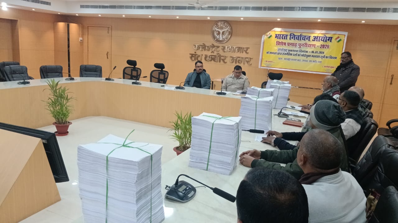 उल्लेखनीय है कि भारत निर्वाचन आयोग के निर्देशानुसार अर्हता तिथि 01.01.2026 के आधार पर विधानसभा निर्वाचन क्षेत्रों के निर्वाचक नामावलियो का विशेष प्रगाढ़ पुनरीक्षण दिनांक 04.11.2025 से दिनांक 26.12.2025 तक घर-घर गणना अवधि की कार्यवाही की गयी है। उक्त कार्यवाही के पश्चात् आज दिनांक 06.01.2026 को फोटोयुक्त निर्वाचक नामावलियों का आलेख्य प्रकाशन किया गया। बैठक में समस्त मान्यता प्राप्त राजनैतिक दलों को फोटोयुक्त निर्वाचक नामावलियों की प्रति उपलब्ध करायी गयी।