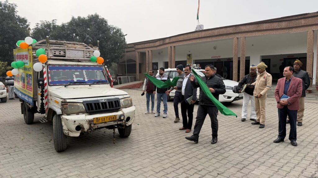 संत कबीर नगर 07 जनवरी 2026 (सूचना विभाग)। जिलाधिकारी आलोक कुमार के निर्देशन में ’राष्ट्रीय सड़क सुरक्षा अभियान 2026 के अंतर्गत अपर जिलाधिकारी (वित्त व राजस्व) जयप्रकाश द्वारा सड़क सुरक्षा जागरूकता अभियान के अंतर्गत सड़क सुरक्षा जागरूकता से संबंधित वाहन को हरी झंडी दिखाकर रवाना किया गया। इस अवसर पर अधि0 अभि0 लोक निर्माण विभाग आर0के0 पांडेय उपस्थित रहे।