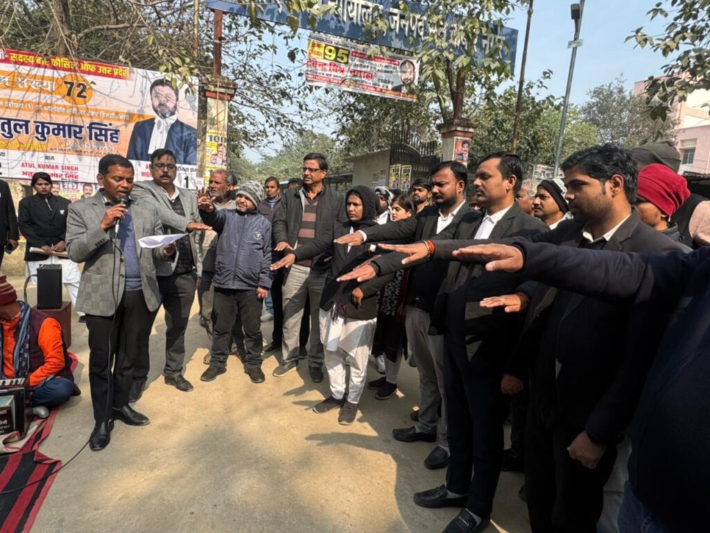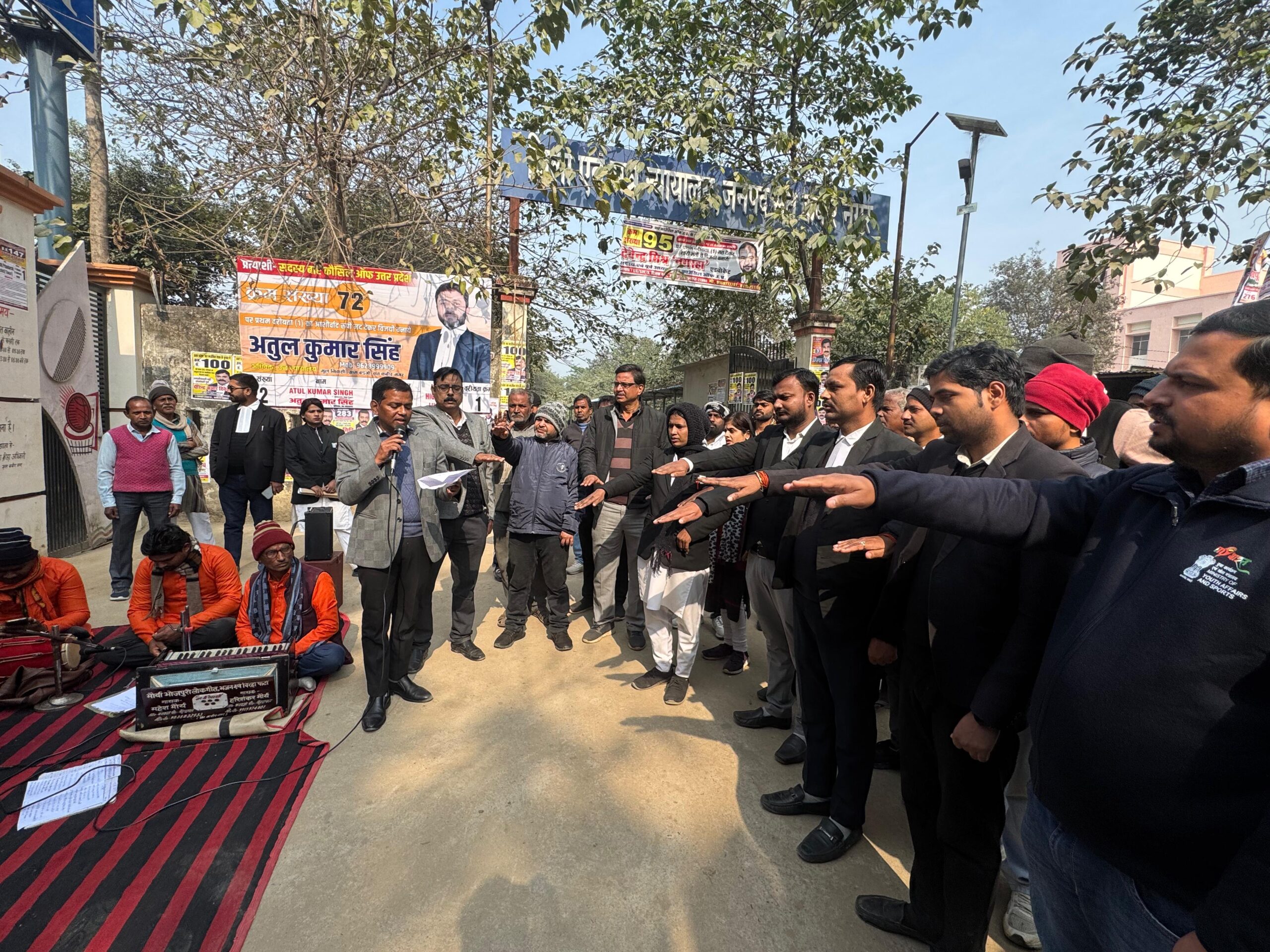 संत कबीर नगर 09 जनवरी 2026(सूचना विभाग) मा0 जनपद न्यायाधीश मोहन लाल विश्वकर्मा के निर्देशन में युवा कार्यक्रम विभाग “मेरा भारत” व जिला विधिक सेवा प्राधिकरण के संयुक्त तत्वाधान में शुक्रवार को स्टेडियम गेट पर नुक्कड़ नाटक का आयोजन किया गया। नाटक व वाद्य संगीत के द्वारा लोगों को नशे से दूर रहने की बात कही गई। प्राधिकरण के सचिव व अपर जिला जज देवेंद्र नाथ गोस्वामी ने उपस्थित लोगों को “जीवन को हां और नशे को ना” की शपथ दिलाई।