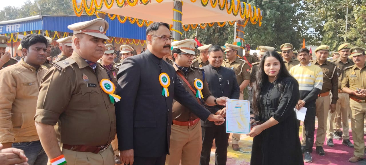 गणतंत्र दिवस के अवसर पर जिलाधिकारी द्वारा उत्कृष्ट कार्य करने वाले पुलिस अधिकारी, पुलिस जवानों, बीर नारियों व छात्र/छात्राओं को किया गया सम्मानित।