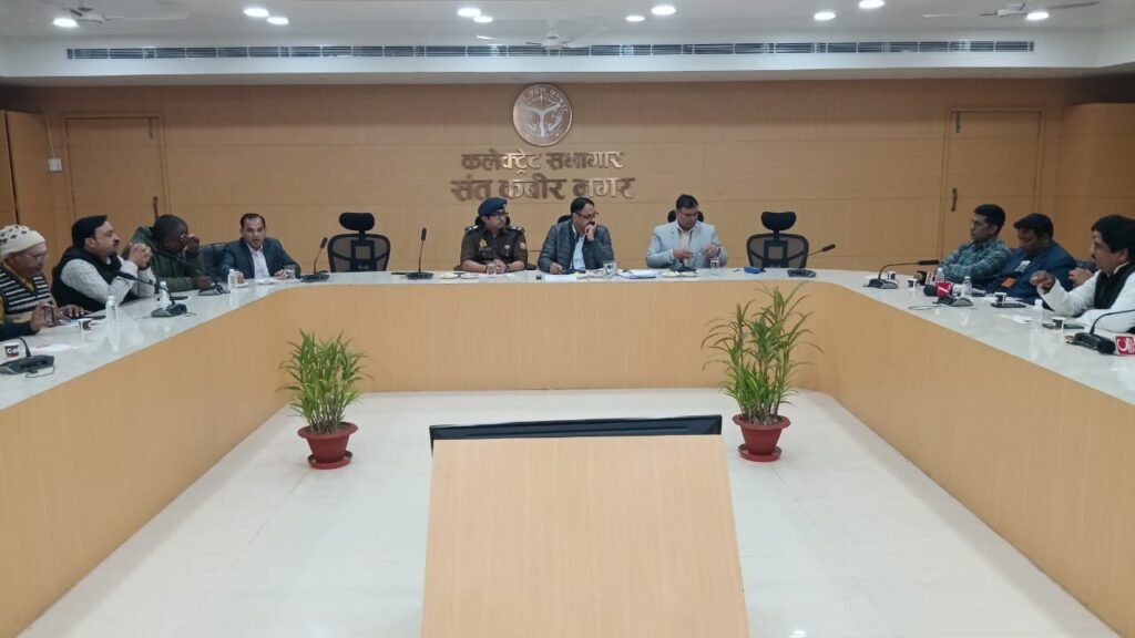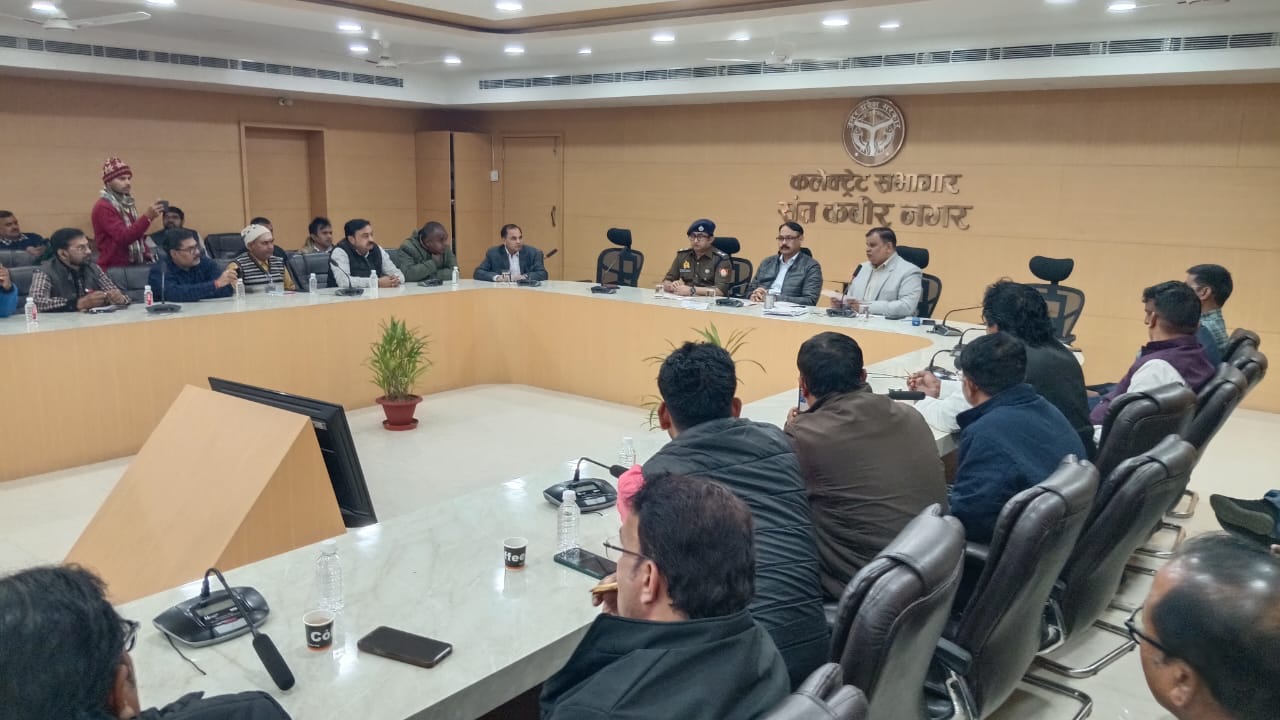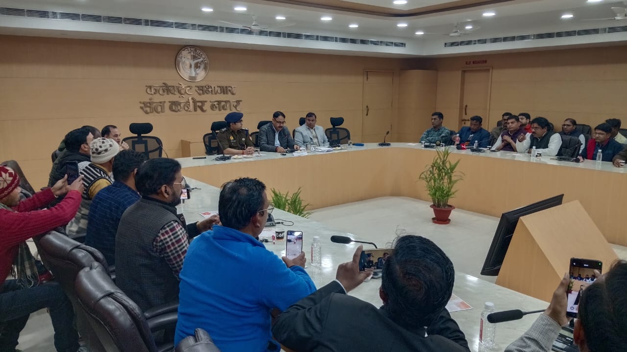 संत कबीर नगर 27 जनवरी 2026 (सू0वि0)। जिलाधिकारी आलोक कुमार व पुलिस अधीक्षक संदीप कुमार मीना द्वारा दिनांक 28 जनवरी 2026 से 02 फरवरी 2026 तक आयोजित होने वाले कबीर मगहर महोत्सव-2026 के भव्य एवं सफल आयोजन के दृष्टिगत जनपद के प्रिन्ट/इलेक्ट्रानिक मीडिया बन्धुओं के साथ कलेक्ट्रेट सभागार में आयोजित प्रेसवार्ता के दौरान मगहर महोत्सव आयोजन के विभिन्न दिवसों में आयोजित होने वाले कार्यक्रमों एवं महोत्सव के दौरान सुरक्षा व्यवस्था के सुचारू संचालन आदि के संबंध में विस्तृत चर्चा की गयी। इस अवसर पर अपर जिलाधिकारी जय प्रकाश उपस्थित रहे।