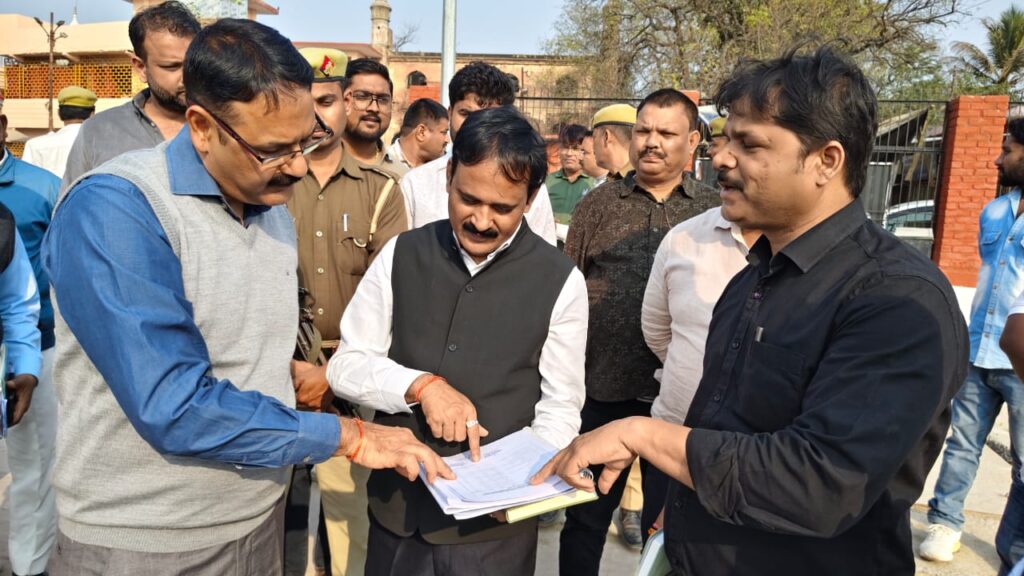 संत कबीर नगर 25 फरवरी, 2026 (सूचना विभाग) जिलाधिकारी आलोक कुमार द्वारा शहर के समय माता मंदिर स्थित पक्का पोखरा के सौंदर्यीकरण आदि से संबंधित निर्माण कार्यों की प्रगति एवं गुणवत्ता का स्थलीय निरीक्षण किया गया। निरीक्षण के दौरान अपर जिलाधिकारी (वित्त व राजस्व) जयप्रकाश व मुख्य विकास अधिकारी जयकेश त्रिपाठी उपस्थित रहे।