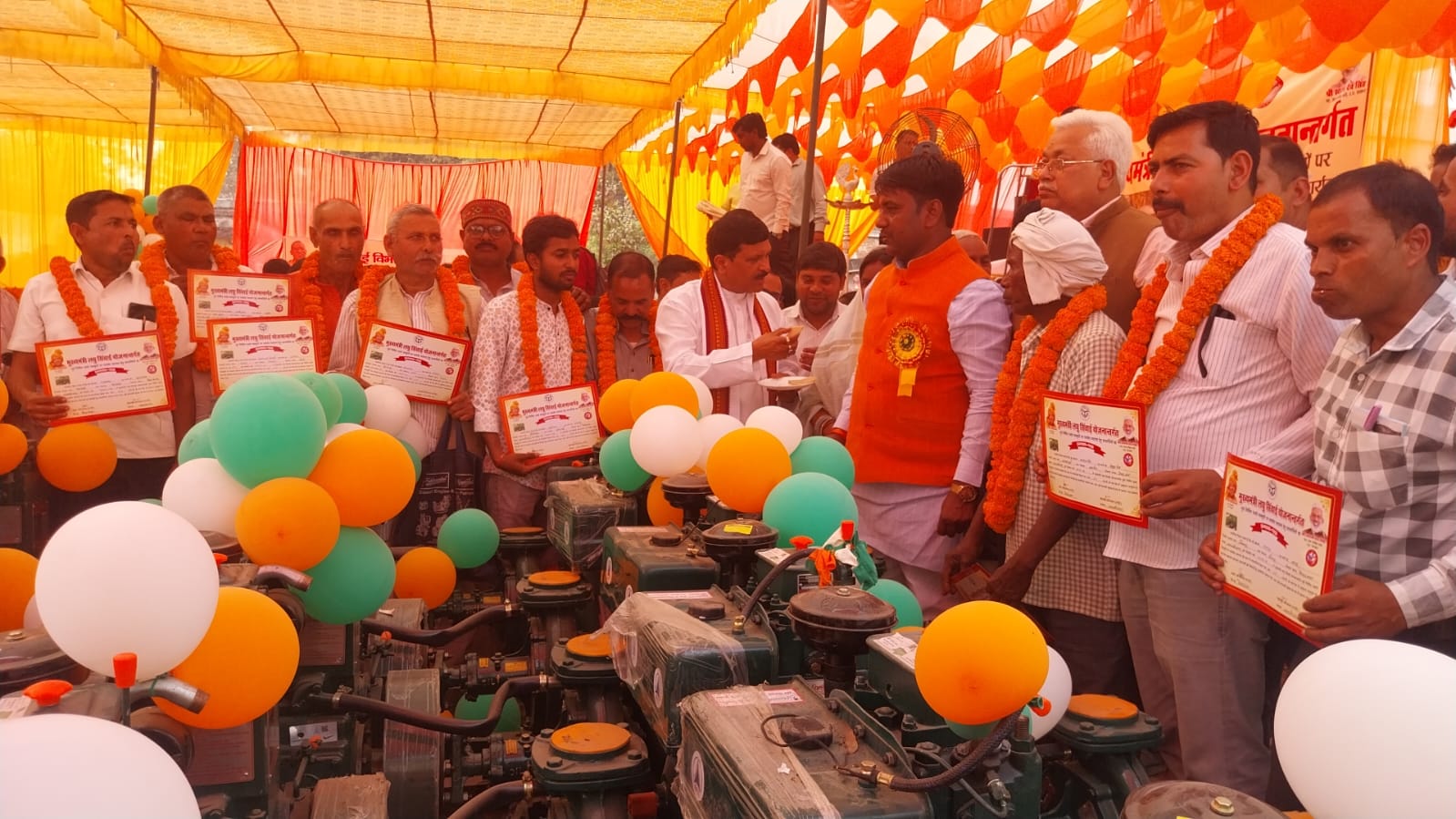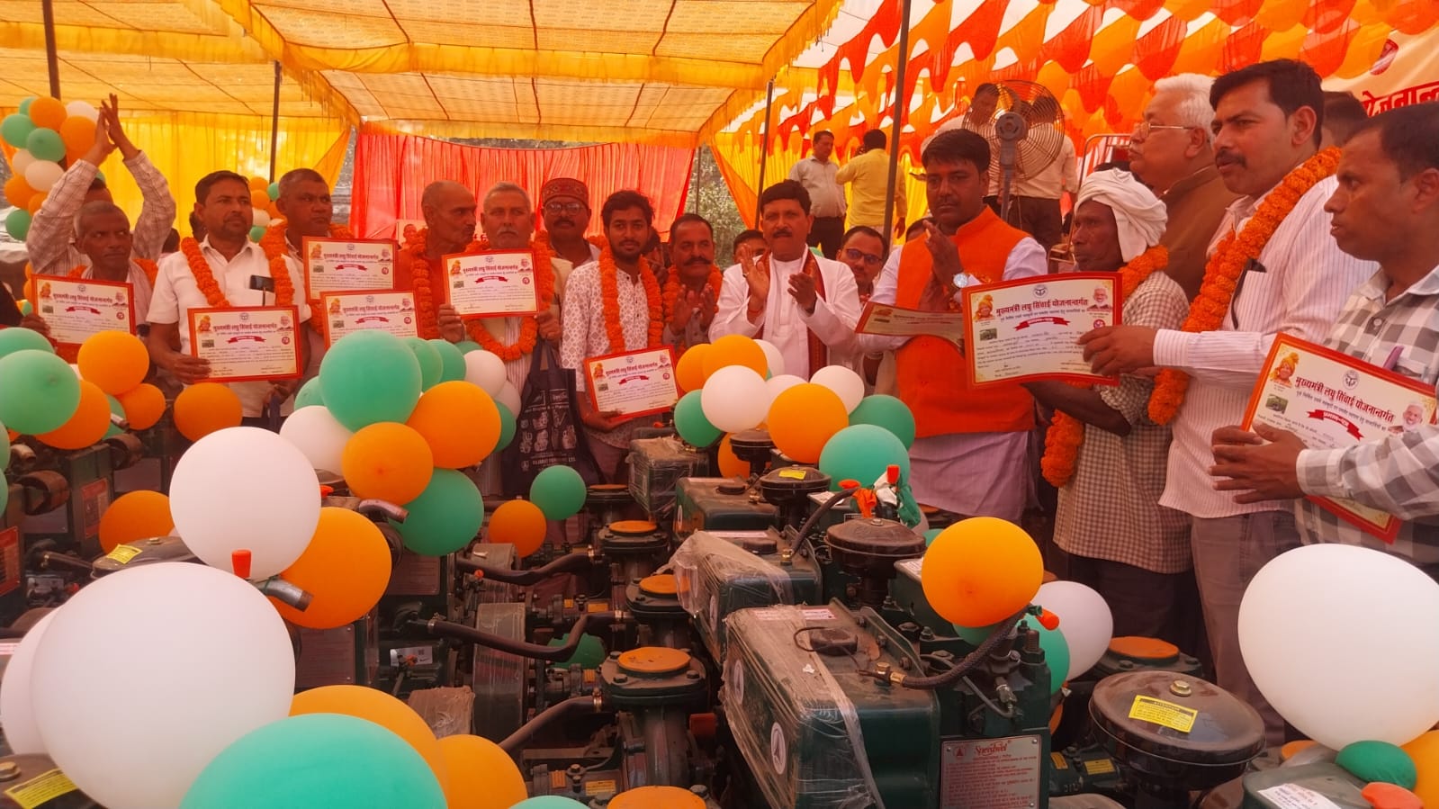 मा0 विधायक मेहदावल, मा0 विधायक धनघटा, मा0 क्षेत्र पंचायत प्रमुख हैसरबाजार, किसान बंधु के अध्यक्ष एवं सीडीओ द्वारा लाभार्थी कृषकों को पंपसेट का किया गया वितरित