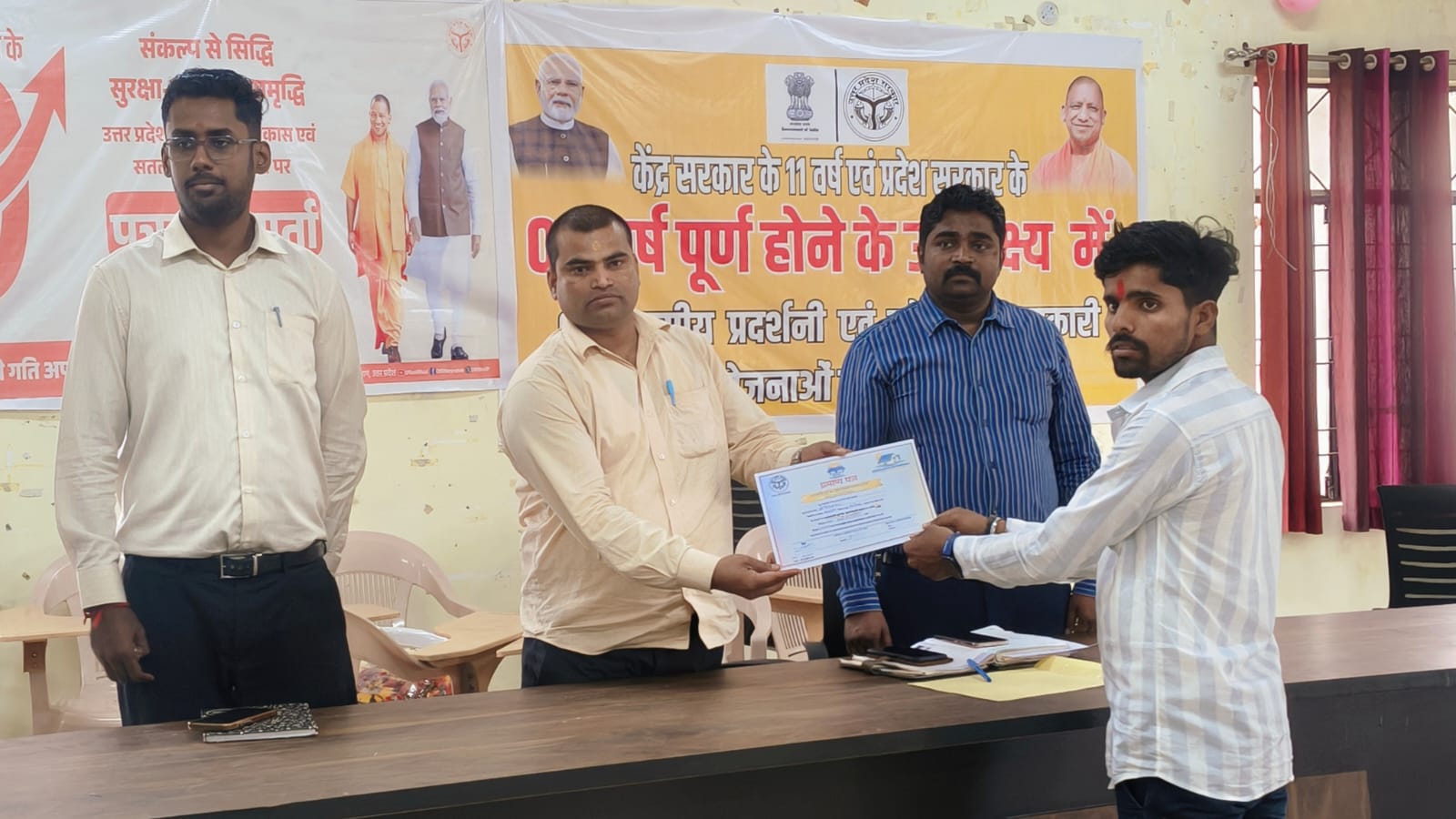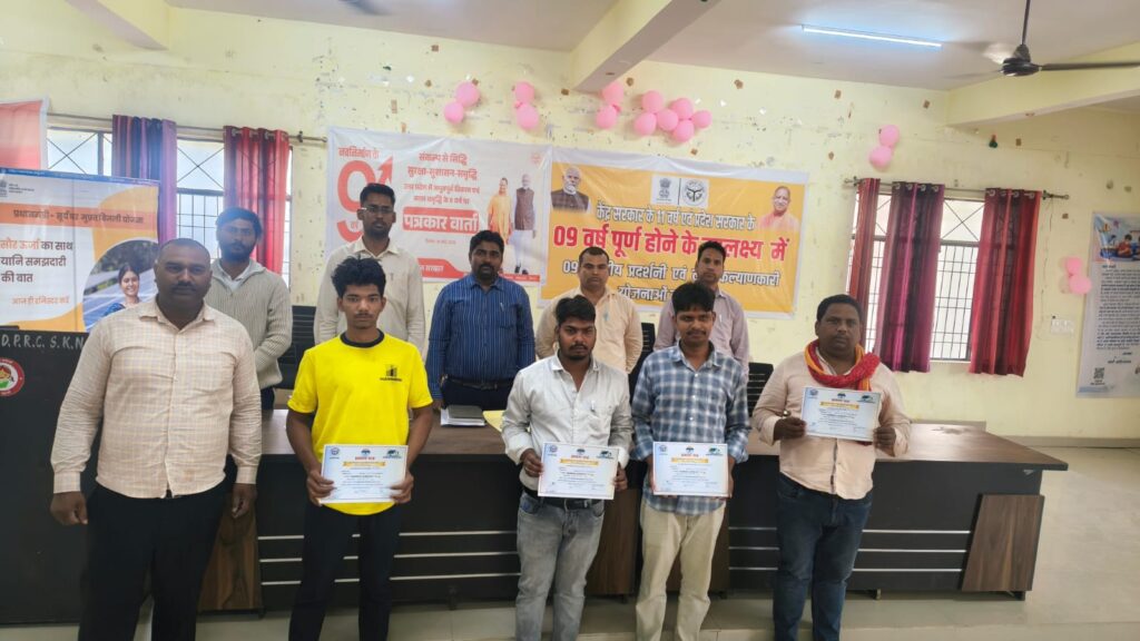 केंद्र सरकार के 11 वर्ष एवं प्रदेश सरकार के 09 वर्ष पूर्ण होने के उपलक्ष में नव निर्माण के 09 वर्ष कार्यक्रम के अंतर्गत जनपद के डी0पी0आर0सी0 भवन में आयोजित कार्यक्रम में यूपीनेडा द्वारा सरकार द्वारा चलाई जा रही योजनाओं की उपलब्धियों क्या किया गया प्रचार-प्रसार