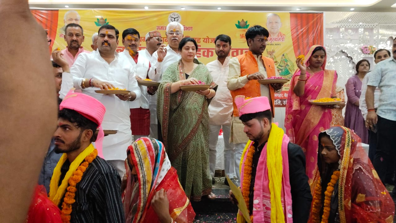 संत कबीर नगर 24 मार्च 2026 (सूचना विभाग) जिलाधिकारी आलोक कुमार के कुशल दिशा-निर्देशन में ‘‘मुख्यमंत्री सामूहिक विवाह’’ योजनान्तर्गत जनपद मुख्यालय स्थित ओम रिजॉर्ट एंड मैरिज लॉन सियरा सांथा, धनघटा रोड, संत कबीर नगर के परिसर में 135 जोड़ों का विवाह धार्मिक रीति रिवाज के अनुसार सकुशल सम्पन्न कराया गया। सामूहिक विवाह में दाम्पत्य सूत्र में बधने वाले नवयुगलों को लैगिंक समानता की शपथ भी दिलाई गयी।