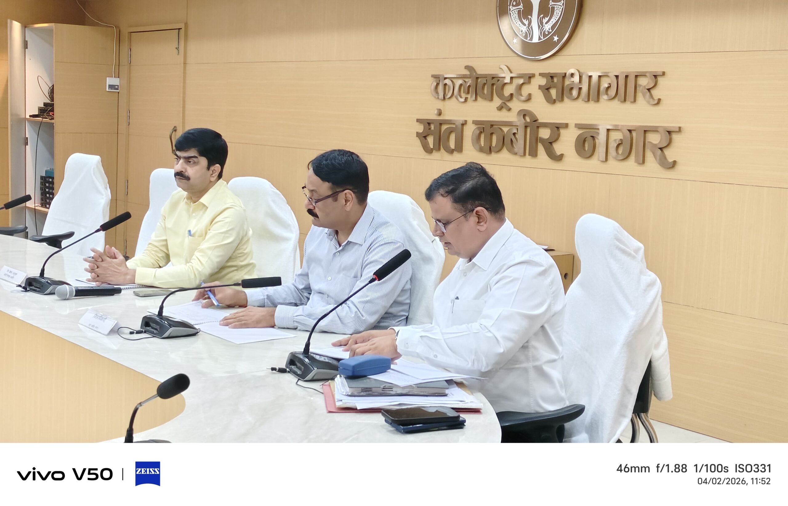 सन्त कबीर नगर 02 अप्रैल, 2026 (सू0वि0)। मण्डलायुक्त बस्ती मण्डल बस्ती/रोल प्रेक्षक अखिलेश सिंह की अध्यक्षता में अर्हता तिथि 01 जनवरी 2026 के आधार पर निर्वाचक नामवलियों का विशेष प्रगाढ़ पुनरीक्षण अभियान (एसआईआर) के दृष्टिगत जनपद के तृतीय भ्रमण कार्यक्रम के दौरान कलेक्ट्रेट सभागार में जिला निर्वाचन अधिकारी/जिलाधिकारी आलोक कुमार, उप जिला निर्वाचन अधिकारी/अपर जिलाधिकारी (वित्त व राजस्व) जय प्रकाश व ई0आर0ओ0/ए0ई0आर0ओ0 के साथ समीक्षा बैठक आयोजित हुई।