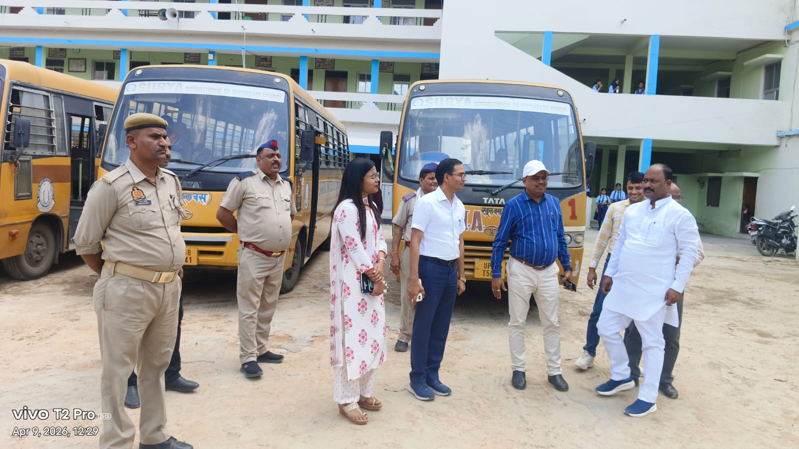 इसी क्रम में आज उप परिवहन आयुक्त (परिक्षेत्र) अयोध्या राजकुमार सिंह द्वारा नवल्स नेशनल एकेडमी खलीलाबाद एवं सूर्या इण्टरनेशनल एकेडमी खलीलाबाद में स्कूली वाहनों का निरीक्षण किया गया एवं विद्यालय संचालक को निर्देशित किया गया कि वाहनों को ऑनलाइन करना सुनिश्चित करें।