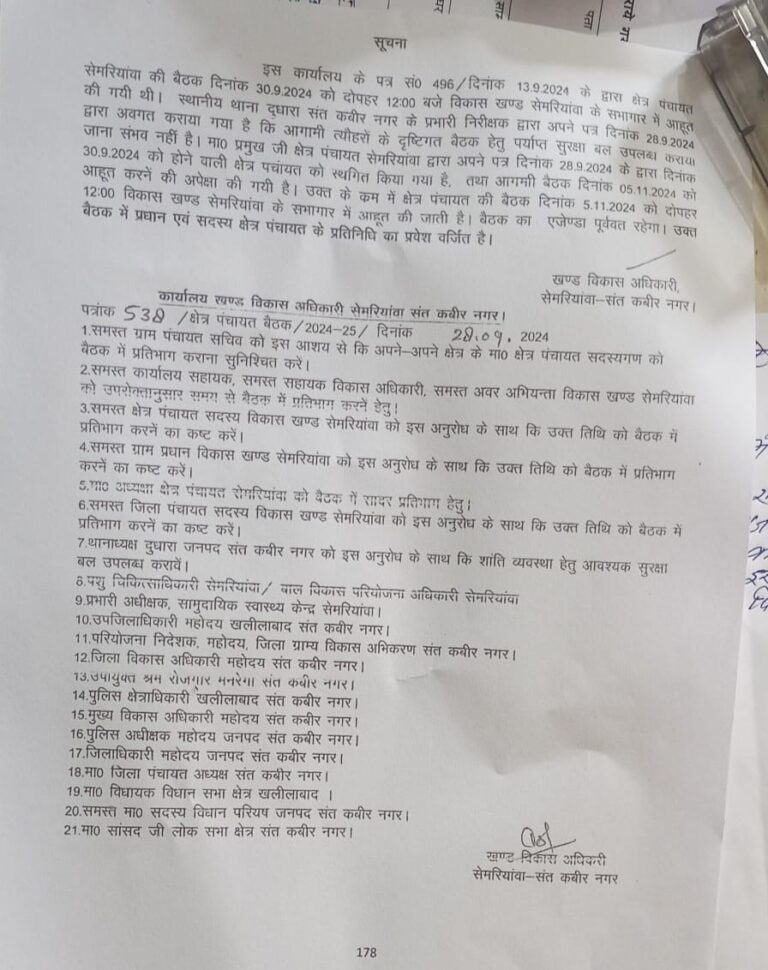 सेमरियावां क्षेत्र पंचायत की बैठक आगामी 05 नवम्बर को 12 बजें ब्लॉक सभागार में आयोजित होगी। उक्त जानकारी खण्ड विकास...